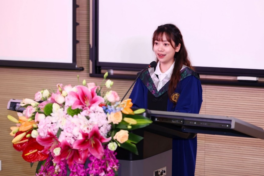 24届优秀毕业生吴雨蔚同学代表全体毕业生发言。吴雨蔚在回顾了自己三年来在北大的收获后,对传道授业解惑、细心保护着员工们的每一位老师们表达了衷心的感谢,与共享三年时光的2021级城规硕士班的同学共勉:希望同学们在今后能不断进行自我革新,时时刻刻把握时代主旋律,紧跟时代需求,提升综合能力,传承北大文化,与国家、民族的命运紧密相连,实现自我价值。