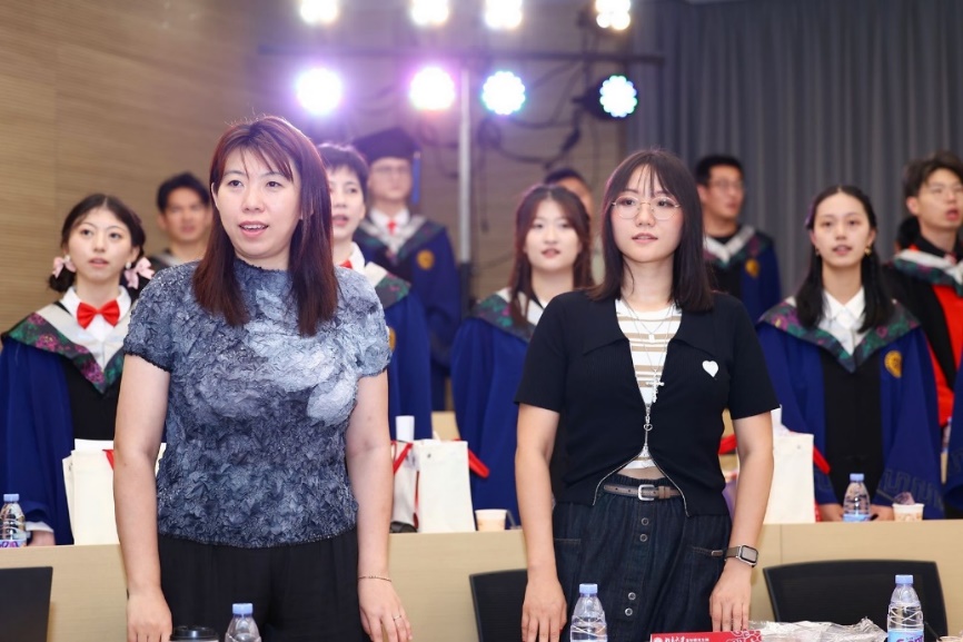 最后,由毕业生尚小钰带来演唱《凤凰花开的路口》,同学们一起观看毕业祝福视频并合唱《燕园情》,典礼在师生们饱含深情的歌声中落下帷幕。