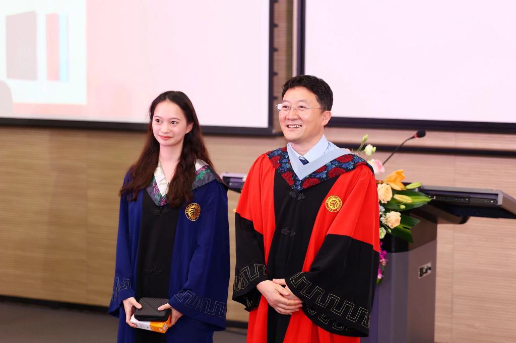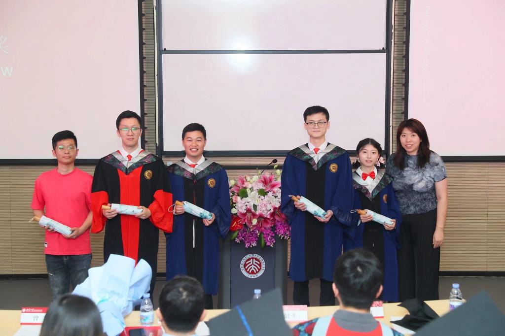 张浩然老师宣读毕业生班主任和优秀毕业生获奖名单,赵鹏军老师为获奖教师仝德老师、汤俊卿老师,以及获奖员工鲁大铭、范雪宁、吴雨蔚、王晗、冯晋如、凌昌隆、李想、杨辉宇、司子黄颁奖并合影留念。