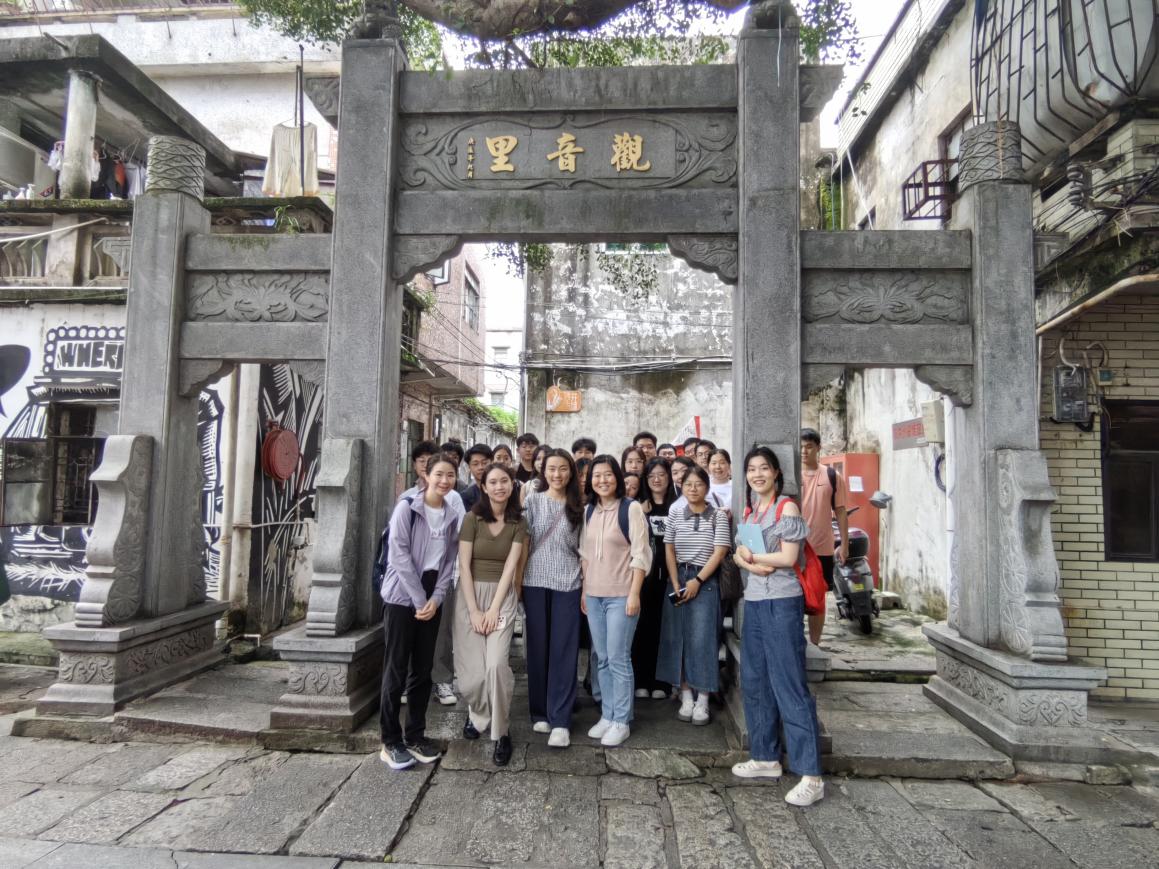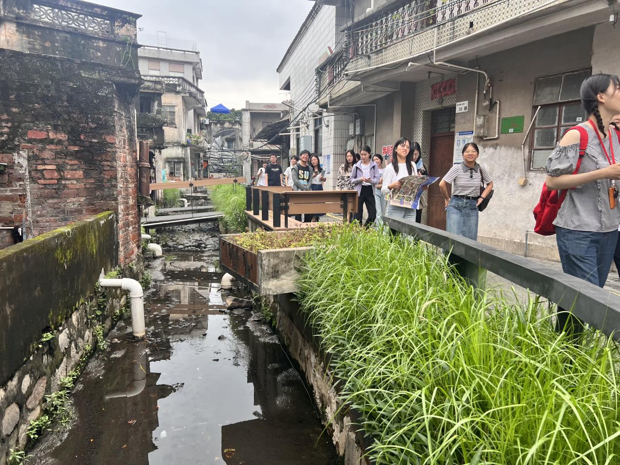 老师与选课同学在沙井调研