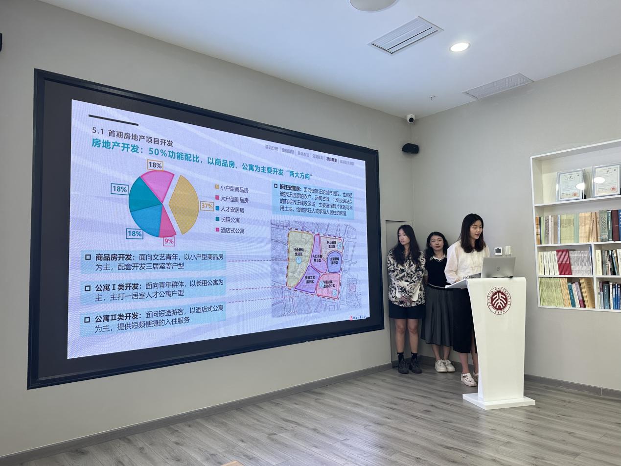 2024年6月25日上午,在C111英国威廉希尔英文官网未来城市实验室,公司仝德老师、李玲老师、邱君丽博士后,课程同时邀请了华润城市更新事业部的朱雅婧等企业同行,总计五位老师共同参与结课汇报评审。选修《房地产市场理论与实践》与《城市土地与土地利用规划专题》课程的同学经过为期三周的精心准备,带来了细致、全面、精彩的汇报。