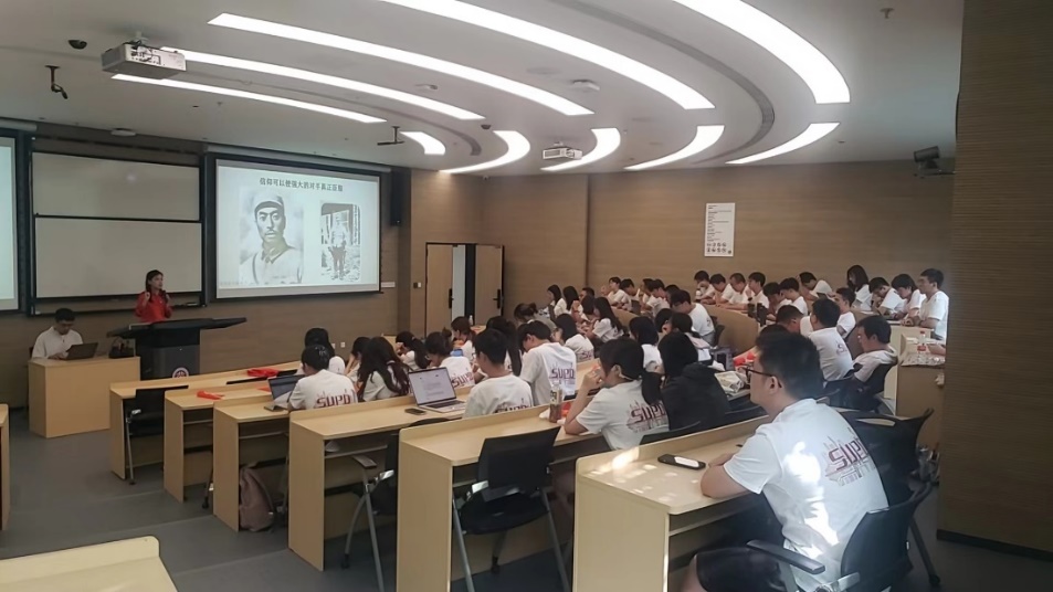 课堂上,杨华老师穿插播放《国际歌》《保卫黄河》《我的祖国》等经典歌曲,为大家讲述了革命先贤在各个阶段艰苦奋斗的英勇事迹,让课堂学习的师生们深刻感受到了“信仰的力量”。