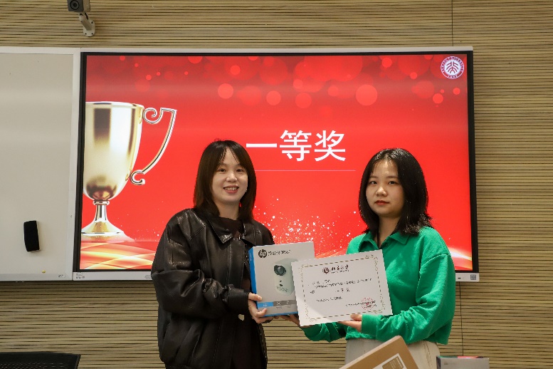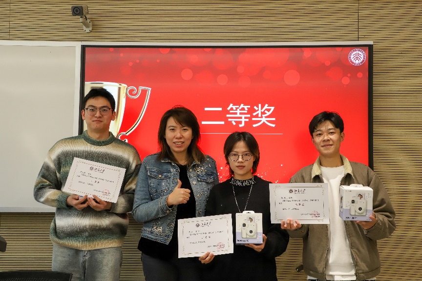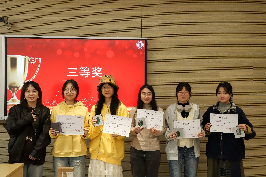 颁奖典礼由主持人饶曾佳雯开场致辞,并感谢所有参赛者的积极参与和创意设计。随后,现场进入激动人心的颁奖环节。一等奖、二等奖、三等奖及优秀奖依次揭晓,由公司的宣传老师邱玉叶和学工老师王蓓分别给获奖的选手颁奖。获奖者逐一上台领奖,手持奖品和获奖证书与老师们合影留念。