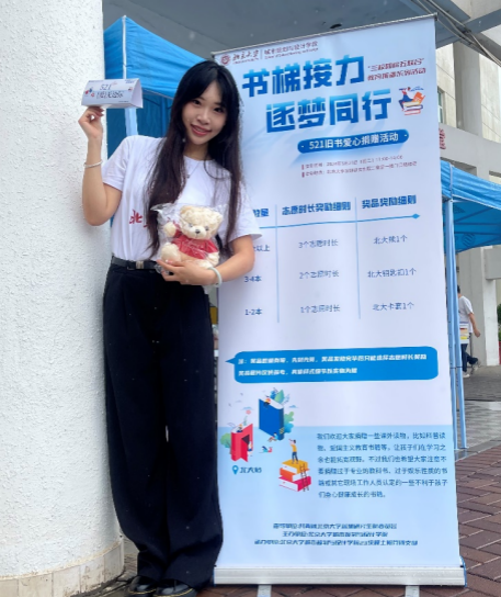 在全国各地,勇担社会责任,党团支部联合吉林大学与石河子大学发起“三校四院五联合”教育援疆系列活动,在新疆建设首个高中“青马工程”示范基地,共计开展线上支教、线下捐书12次活动,在去年5.21当天,她与团队线下募捐图书达327本,全数发往库尔勒第六中学,为渴望知识的小朋友送去精神食粮,捐书当日的小雨也抵挡不住支部同学团结一心、踊跃参与的热情,活动共吸引师生300人次参与。