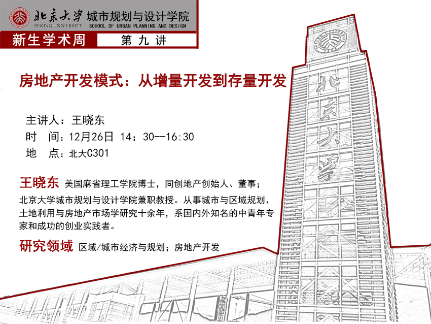 【新生学术周】 12月26日14:30 王晓东博士 “房地产开发模式:从增量开发到存量开发”