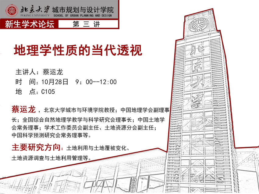 【新生学术周】10月28日上午九点 蔡运龙教授:地理学性质的当代透视