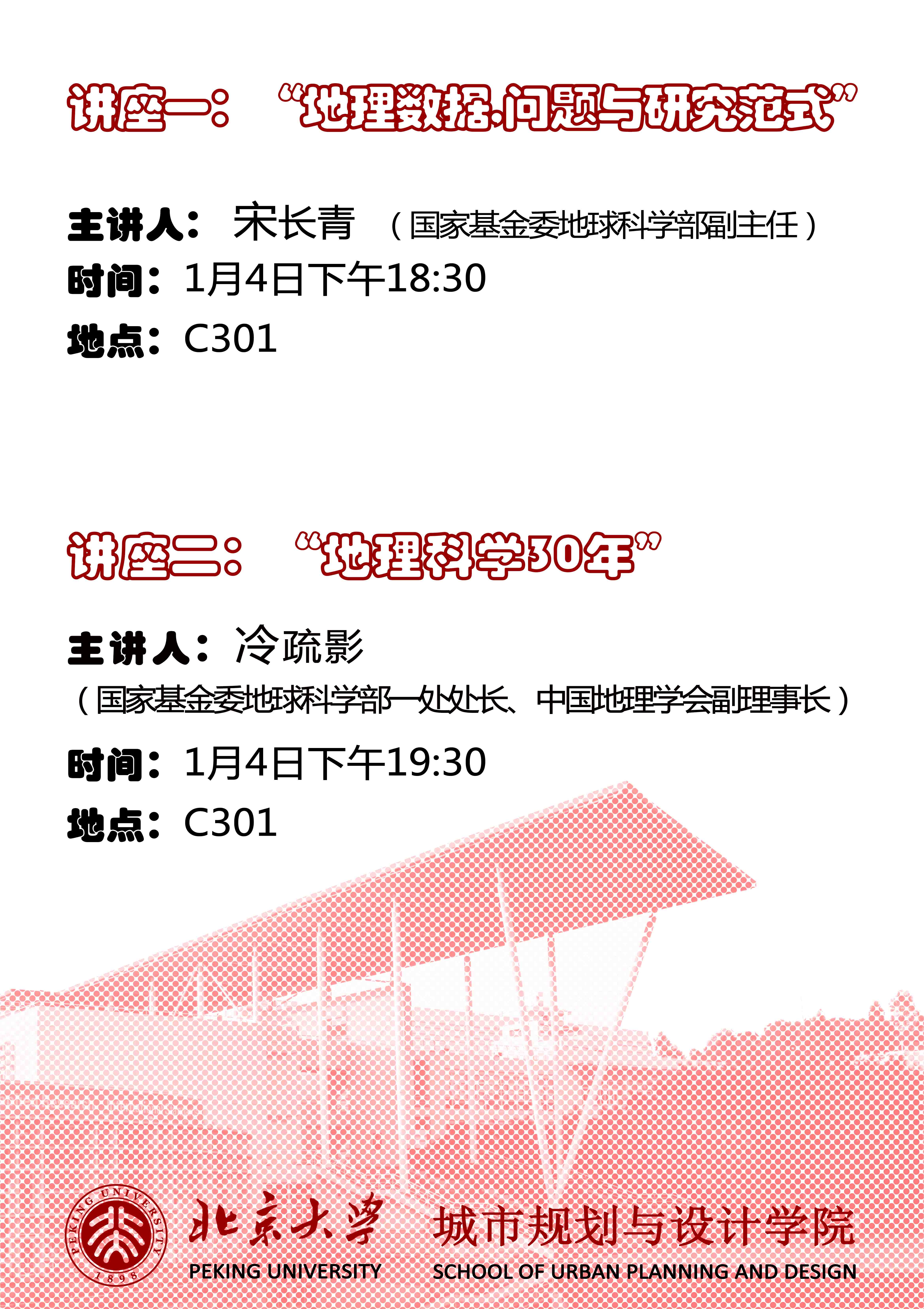 【讲座预告】1月4日下午六点半《 地理数据,问题与研究范式》《地理科学30年》