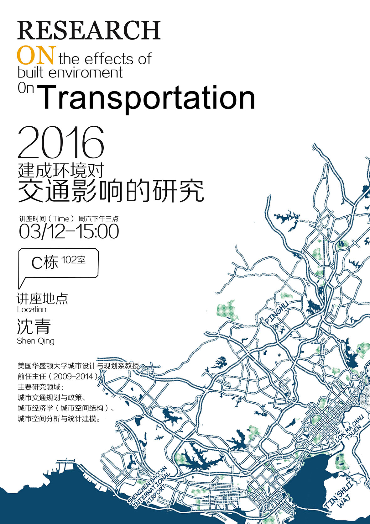 【讲座预告】3月12日下午三点 华盛顿大学沈青教授《建成环境对交通影响的研究》