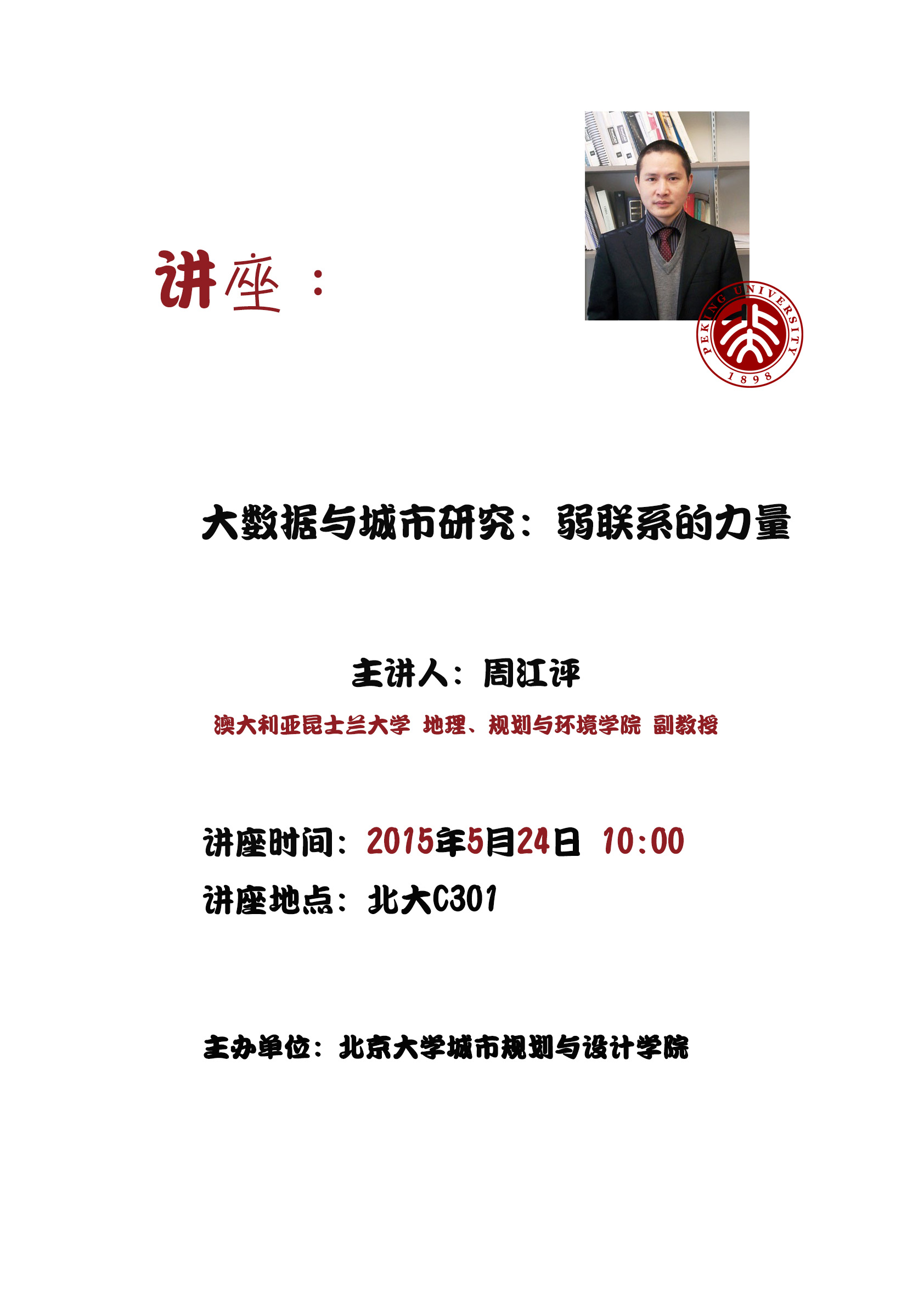 【讲座预告】 大数据与城市研究:弱联系的力量