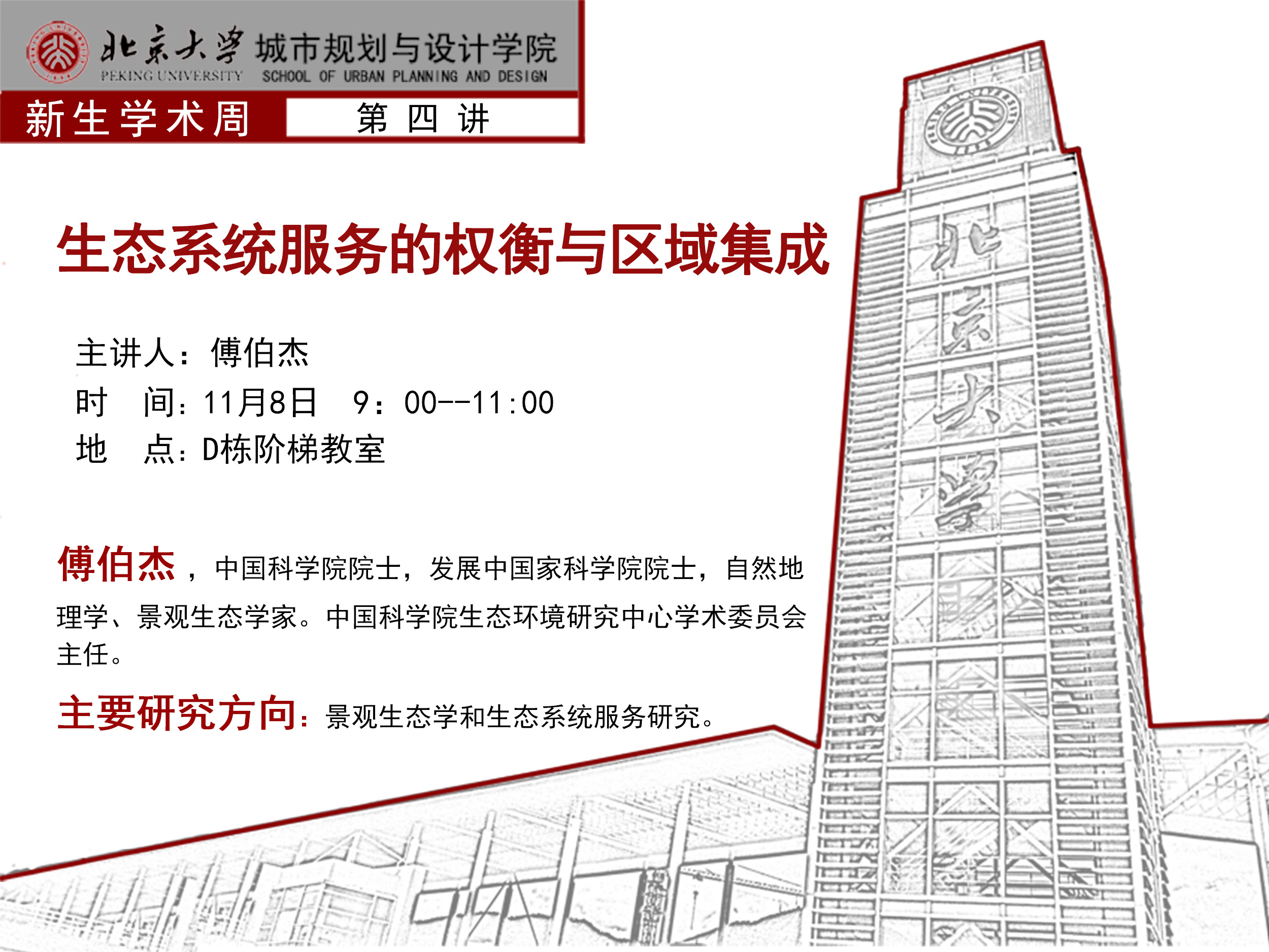 【新生学术周】11月8日上午9点 傅伯杰院士“生态系统服务的权衡与区域集成”
