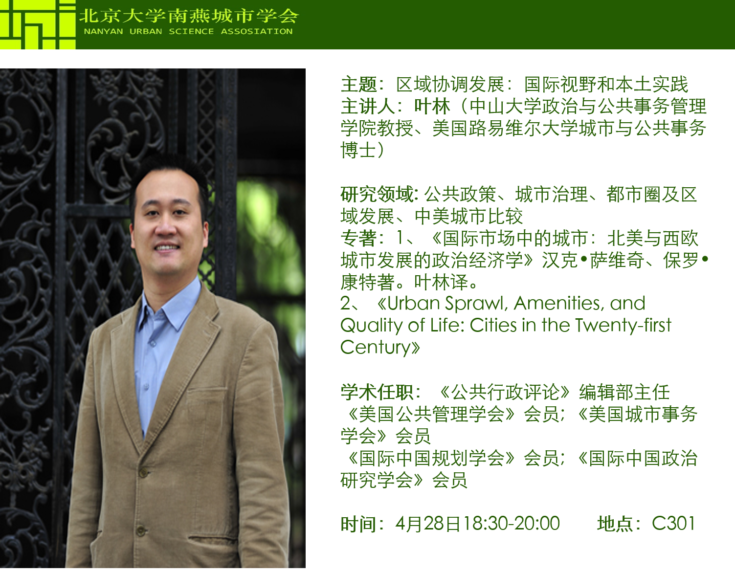 【南燕城市沙龙】叶林博士“区域协调发展:国际视野和本土实践”