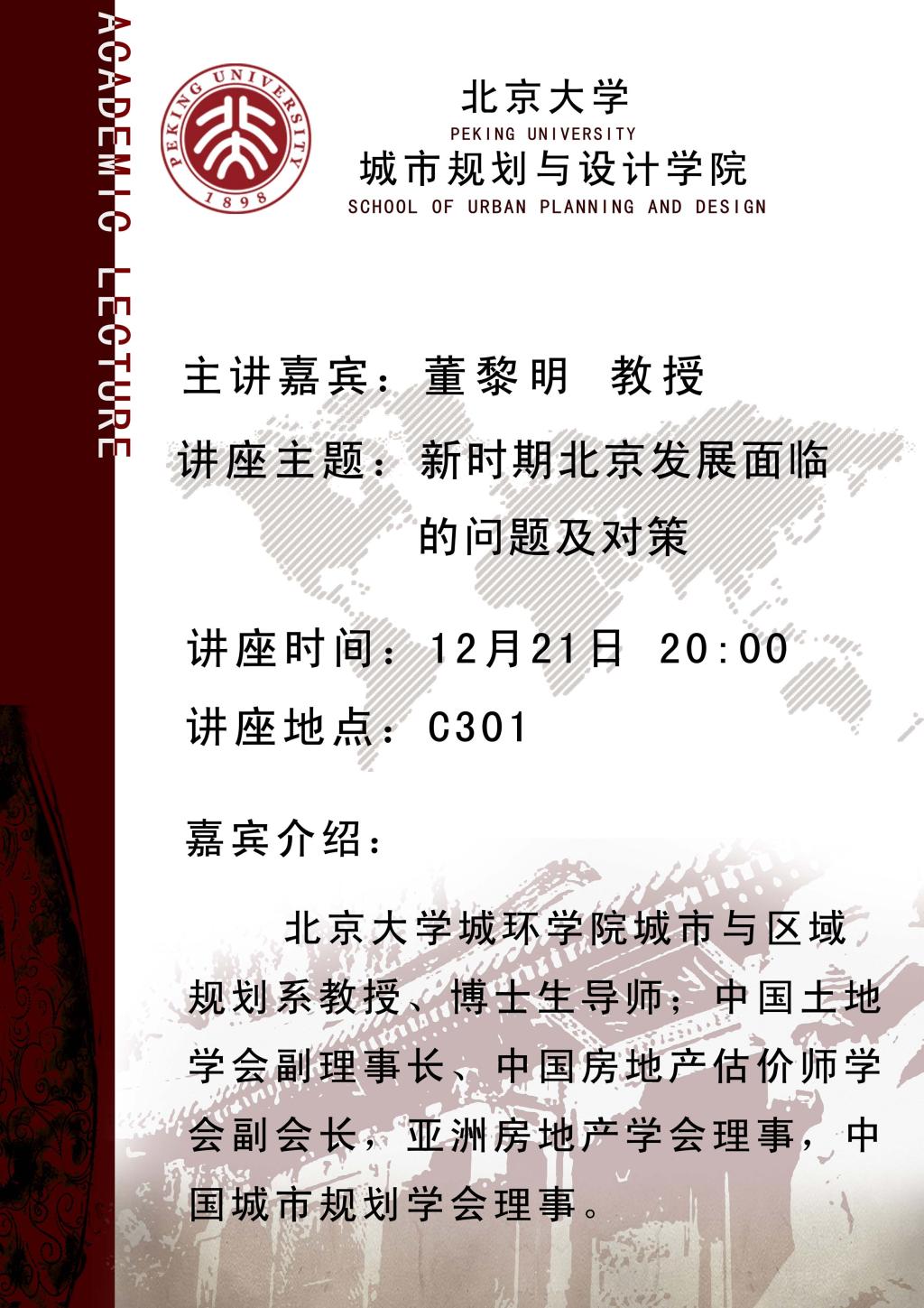 【讲座预告】董黎明教授:新时期北京发展面临的问题及对策