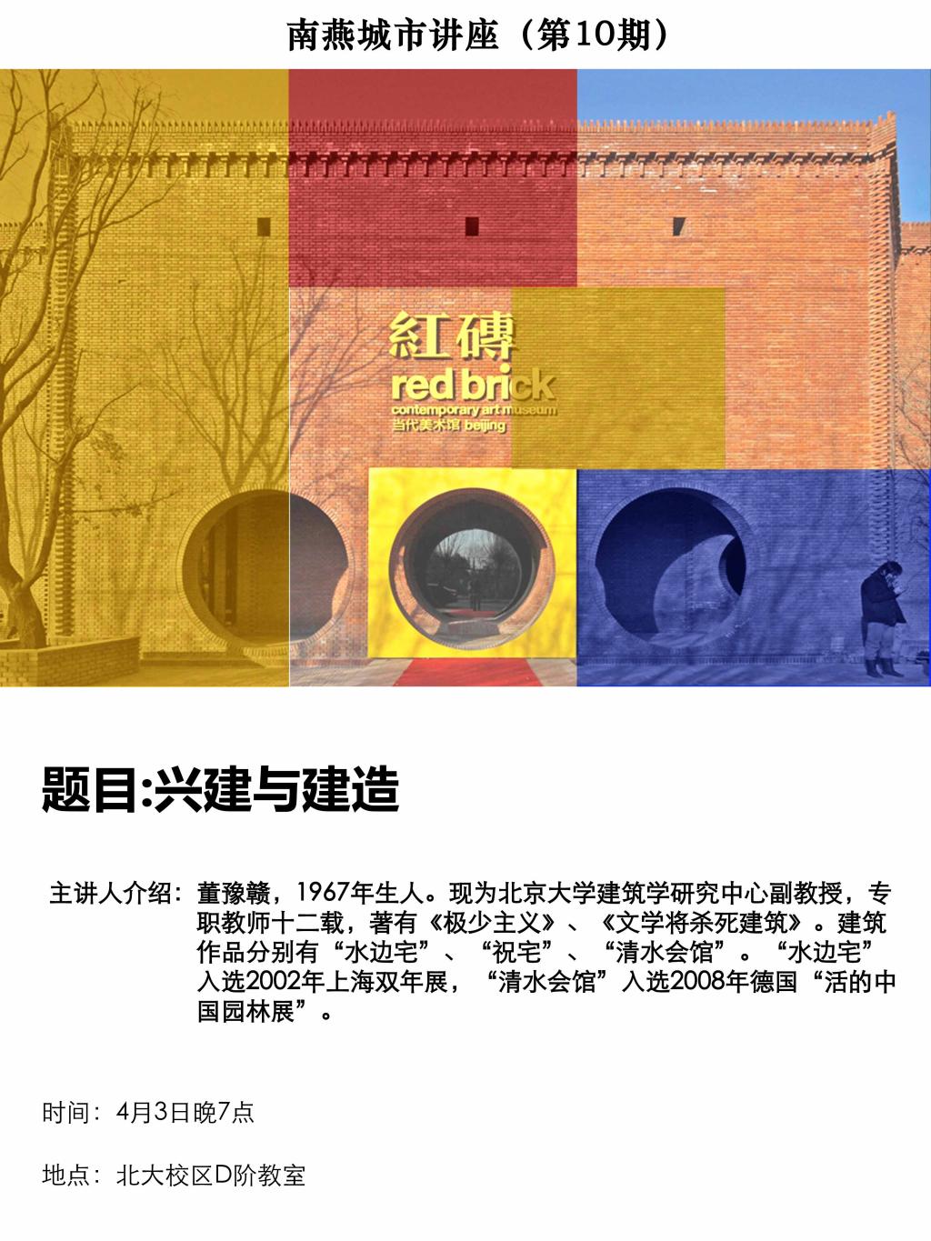 【讲座预告】董豫赣副教授:兴建与建造