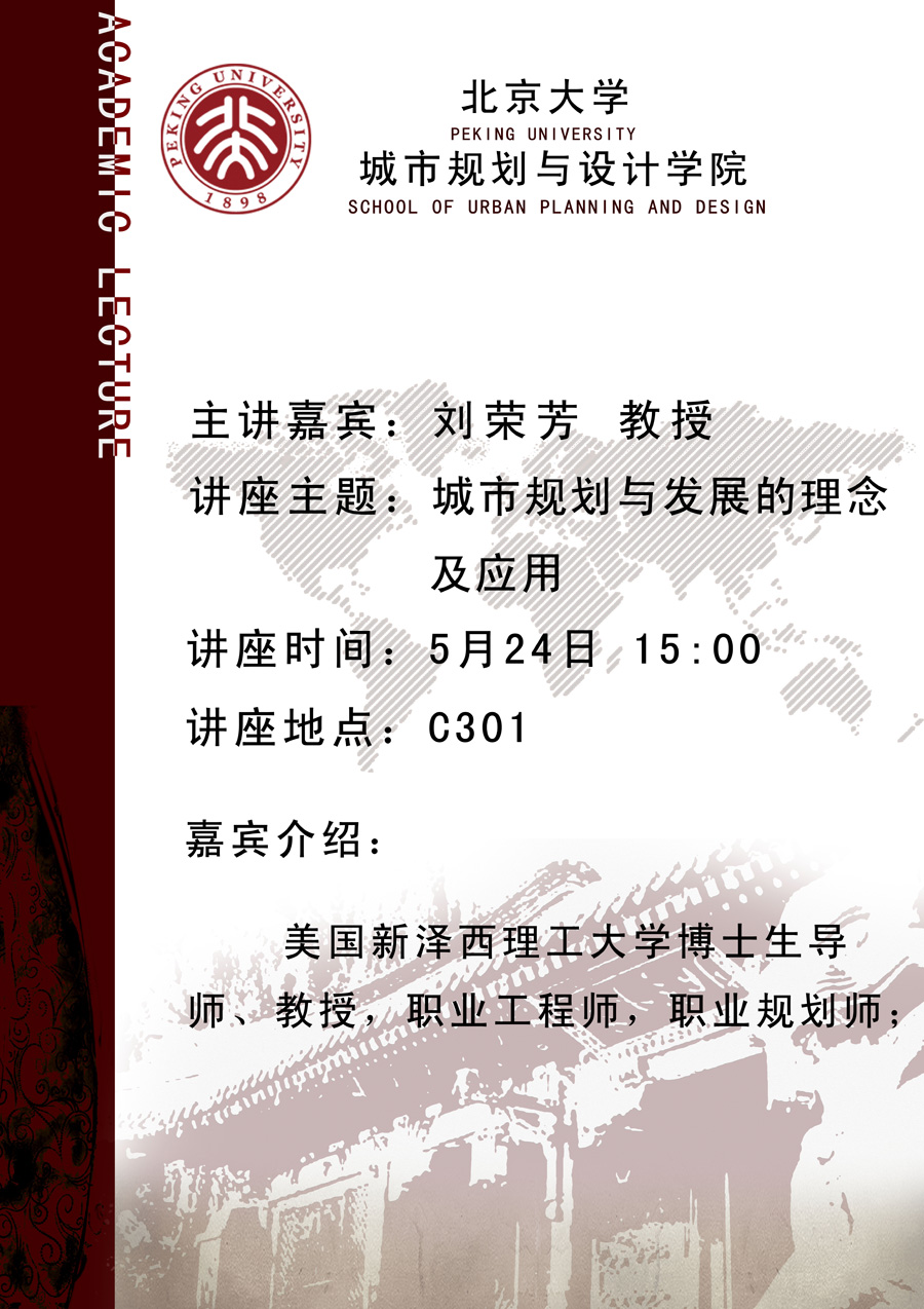 【讲座预告】城市规划与发展的理念及应用