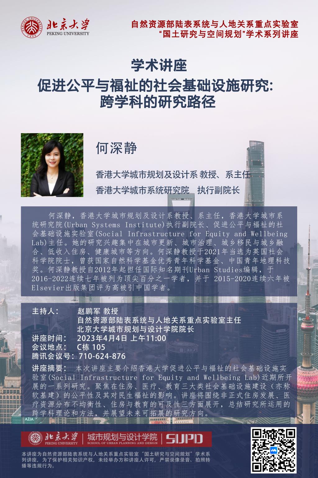 【讲座预告】2023年4月4日11:00 促进公平与福祉的社会基础设施:研究跨学科的研究路径