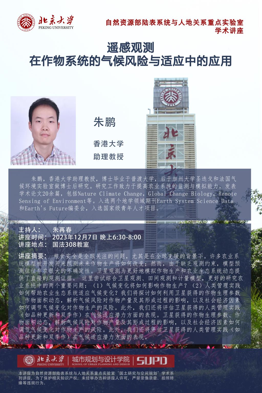 专家讲座——朱鹏 遥感观测在作物系统的气候风险与适应中的应用