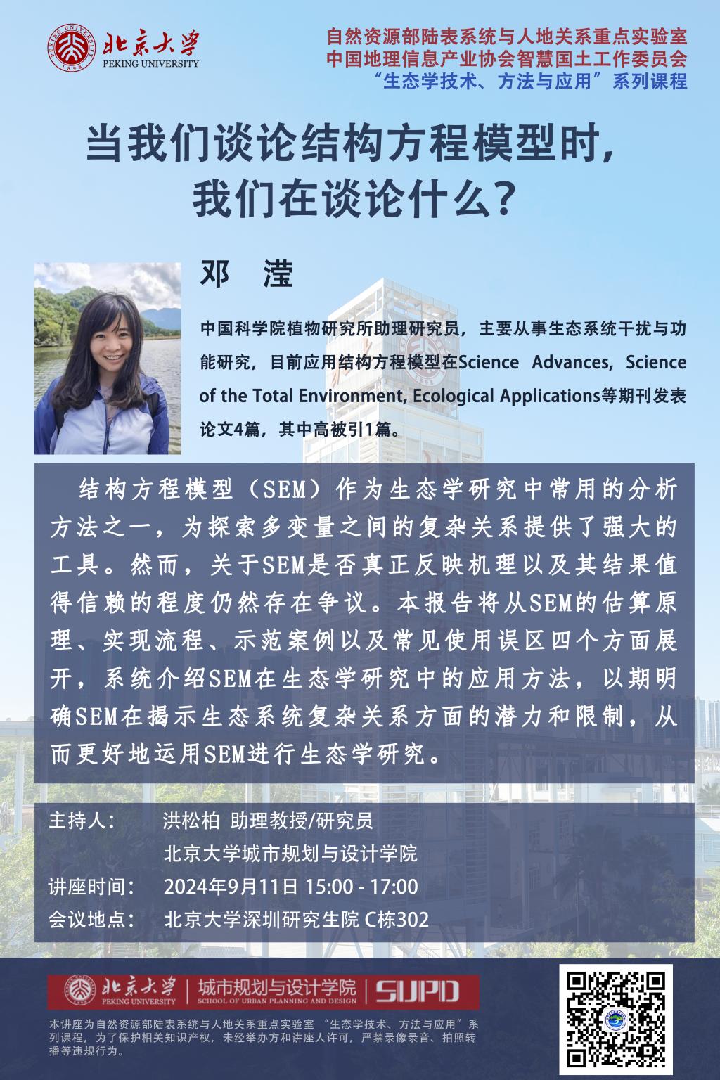 “生态学技术、方法与应用”系列课程—— 邓滢《当我们谈论结构方程模型时我们在谈论什么?》