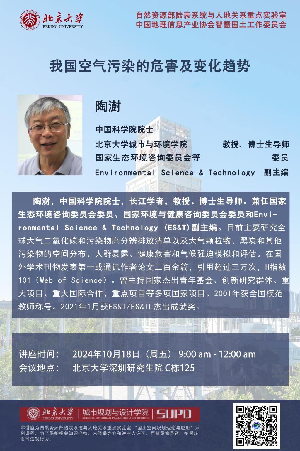 讲座预告——陶澍 《我国空气污染的危害及变化趋势》