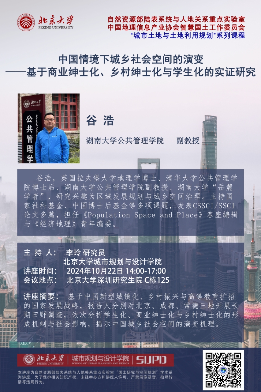 "城市土地与土地利用规划"系列课程——谷浩 中国情境下城乡社会空间的演变——基于商业绅士化、乡村绅士化与员工化的实证研究