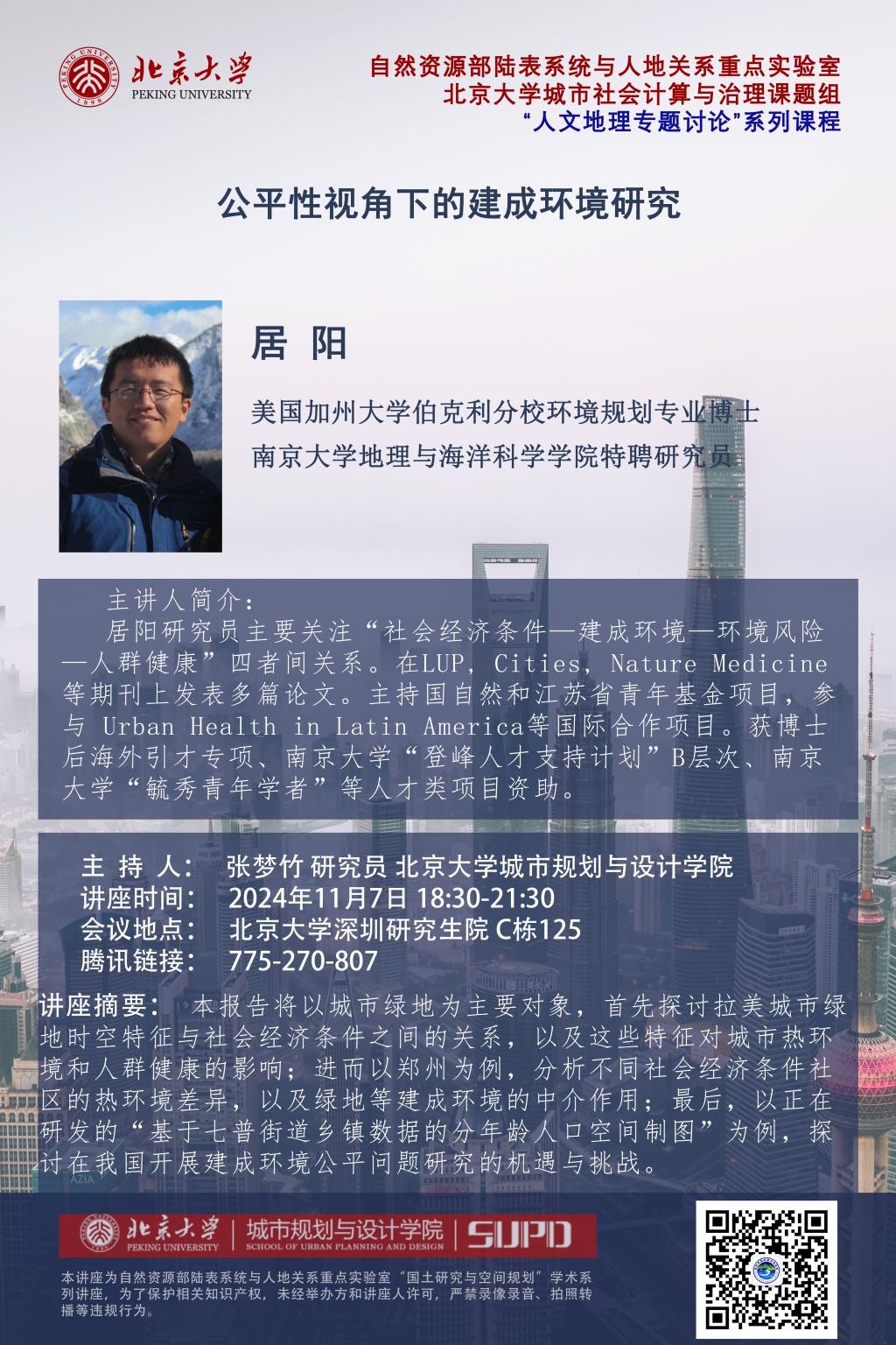 人文地理专题讨论课程讲座系列——居阳 公平性视角下的建成环境研究