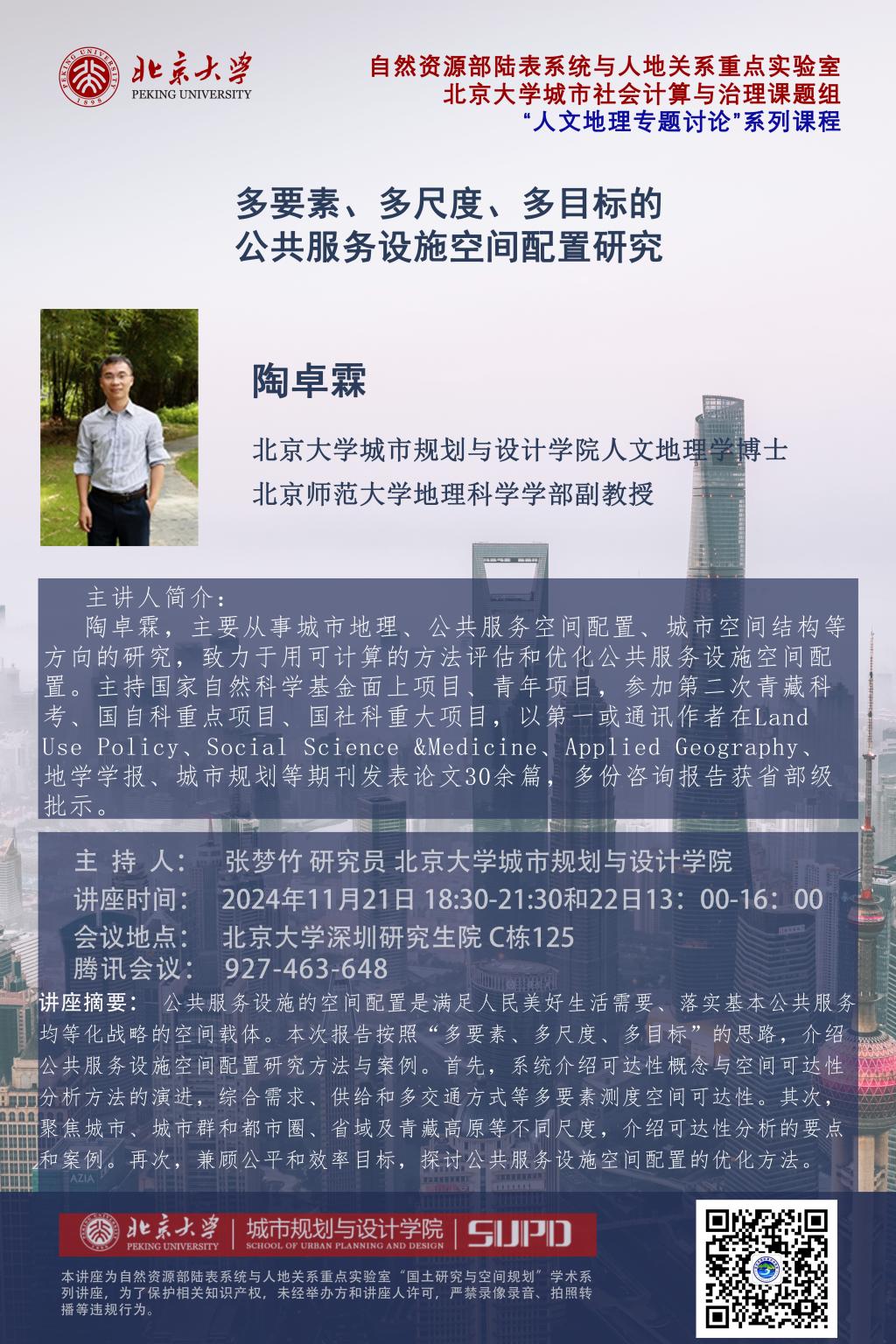 人文地理专题讨论课程讲座系列-陶卓霖 多要素、多尺度、多目标的公共服务设施空间配置研究
