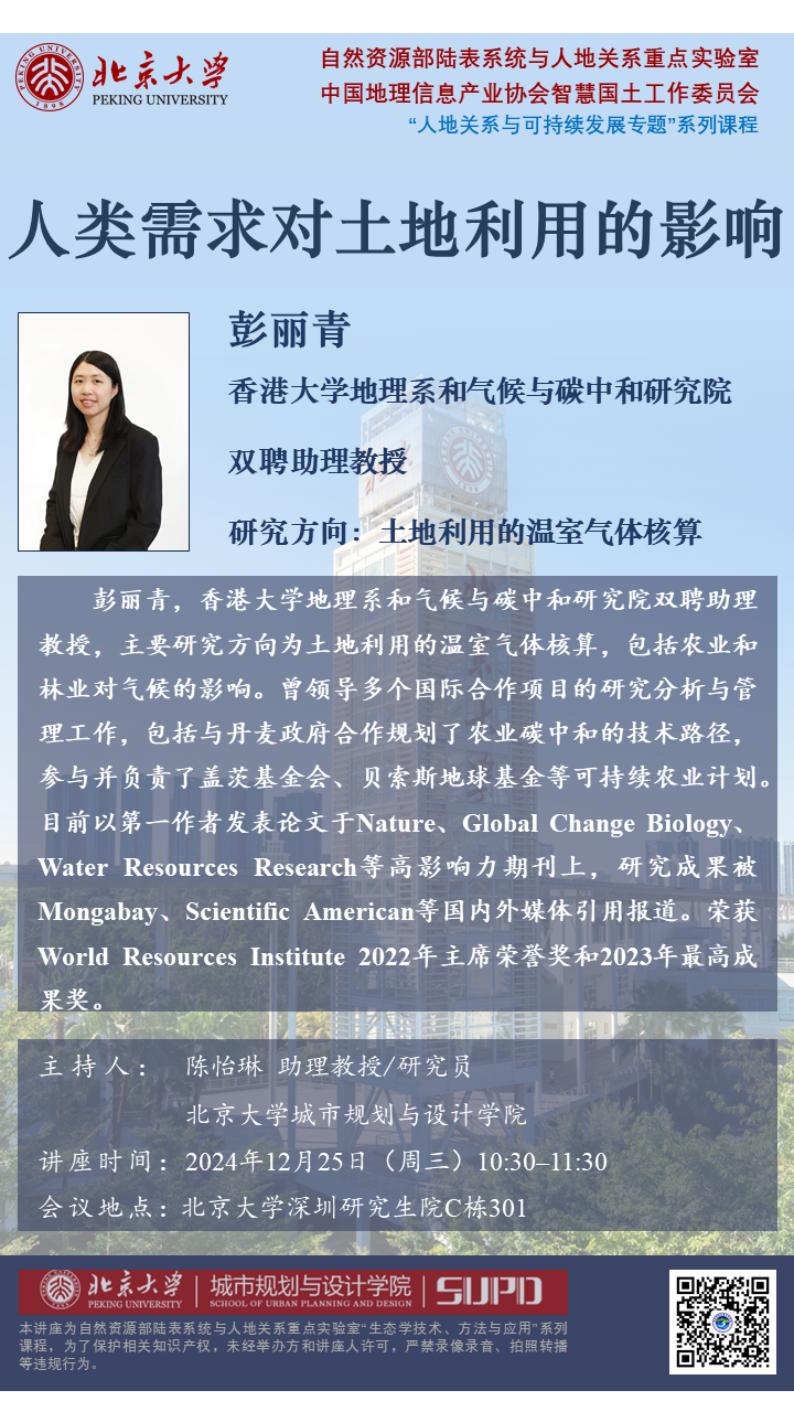 “人地关系与可持续发展专题”系列课程——彭丽青 《人类需求对土地利用的影响》
