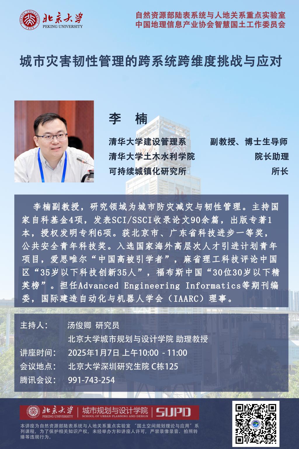 学术讲座——李楠 城市灾害韧性管理的跨系统跨维度挑战与应对