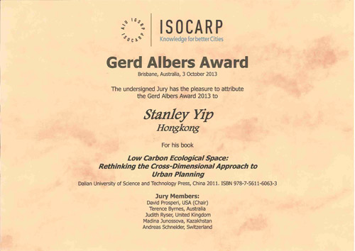 “国际城市与区域规划师学会(International Society of City and Regional Planners, ISOCARP)2013年度“葛德•阿尔伯斯奖”(Gerd Albers Award) 颁发给了公司兼职教授叶祖达博士于2011年出版的《低碳生态空间:跨维度规划的再思考》一书(大连理工大学出版社. ISBN 978-7-5611-6063-3)。