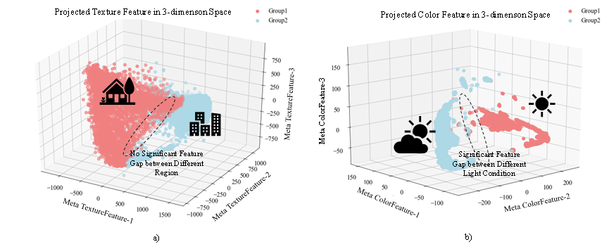 图7.光伏板图像纹理特征与颜色特征的聚类结果:高度一致的纹理特征与异构的颜色特征