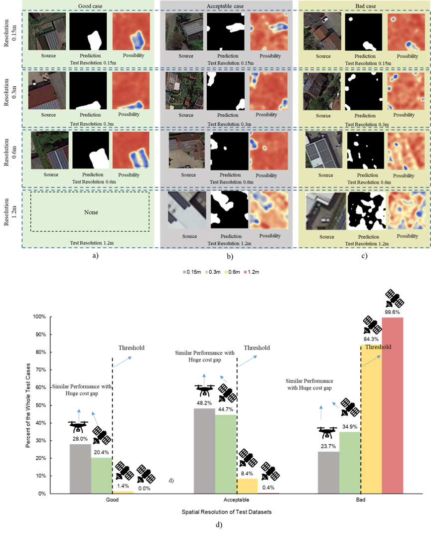 我们比较了一系列具有各种分辨率质量的 PV 数据集,揭示了其分辨率特性:分辨率对于光伏板分割任务的影响是不连续、非线性的,其具有显著的有效分割的分辨率阈值。