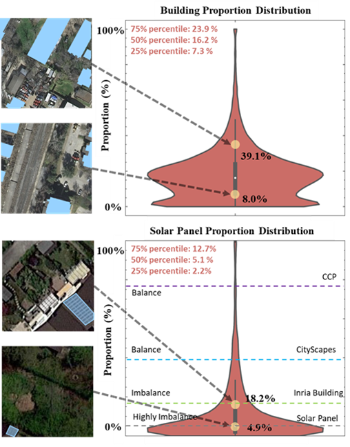 图3.目标/背景比:光伏板与Inria建筑数据集等多个数据集的比较