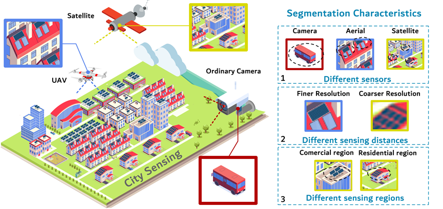 不同的感知平台、不同的感知距离和不同的目标区域造就了各种各样的计算机视觉任务的特性(如图1所示)。光伏板图像分割作为计算机视觉任务也不例外,由其自身特点和感知方式形成了各种特点:包括统计、像素分辨率和视觉特点,剖析这些特性对于更好地使用机器学习工具完成这项任务具有重要作用。