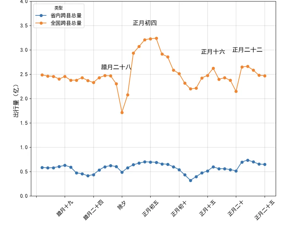 一、预计2025年春运全国跨区县非通勤出行总量和单日峰值均创历史新高