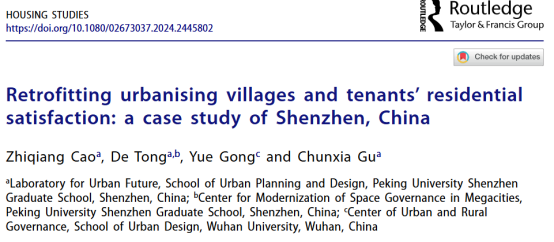原文发表信息:Zhiqiang Cao, De Tong*, Yue Gong* & Chunxia Gu. (2025). Retrofitting urbanising villages and tenants’ residential satisfaction: a case study of Shenzhen, China. Housing Studies, 1–27.