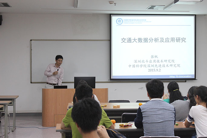 首先是张帆副研究员发言。他的演讲以大数据驱动智能交通应用为核心,大数据通过“采集—分析—回馈”环节形成闭环(即闭环通过实时收集数据,快速迭代从而及时做出决策)。为了加深大家的理解,他以深圳市每天的人流量和人群的出行规律为例,通过融合调查问卷数据、手机用户客流数据、地铁客流数据等,研究不同人群的出行特征、公交流量、电动车辆运营行为、土地规划状况等等。在他风趣的解说下,我们进一步认识了交通大数据的神奇之处和研究城市问题的新视角。