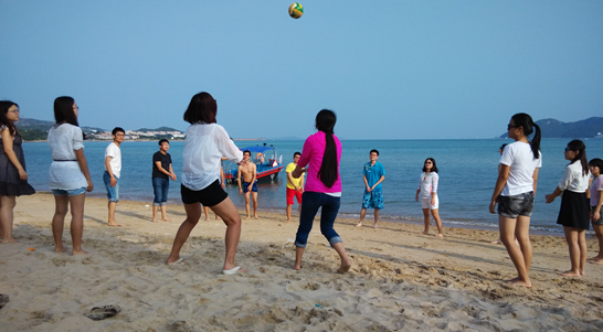 行程启于2日中午12:50,25名同学一同乘车前往深圳较场尾。一路上,大家欢声笑语,情绪高涨,兴奋之情溢于言表。历经一个多小时,众人抵达目的地,入住阳光欧洲城堡,此海景别墅小巧干净且装潢别致,大家不住地拍手叫好。统一分配房间放好行李之后,大伙儿便按耐不住激动的心情,直奔海滩,尽享嬉戏之乐。打沙排、丢沙包、垒沙雕、自由泳、拾贝壳······一切应有尽有,大家乐此不疲。