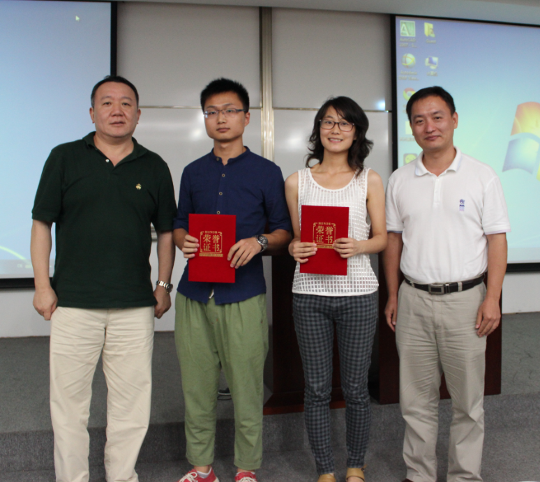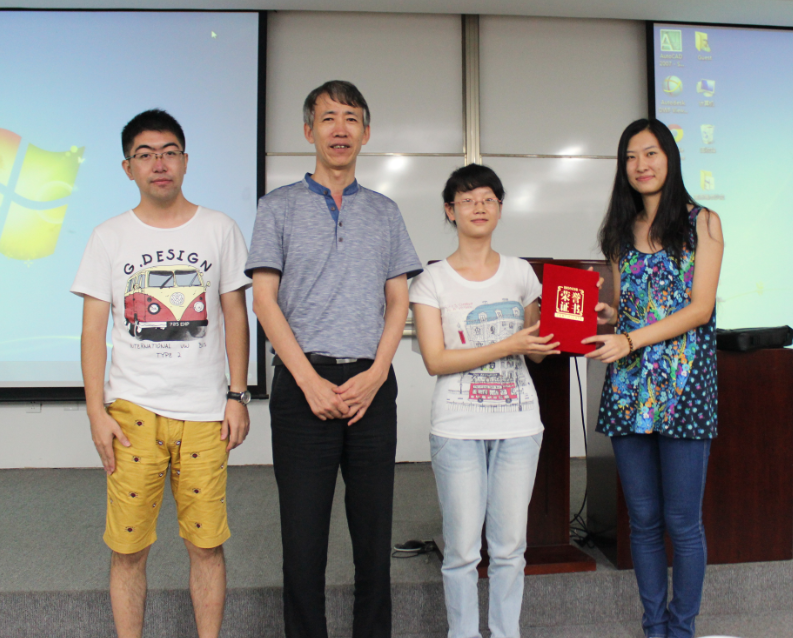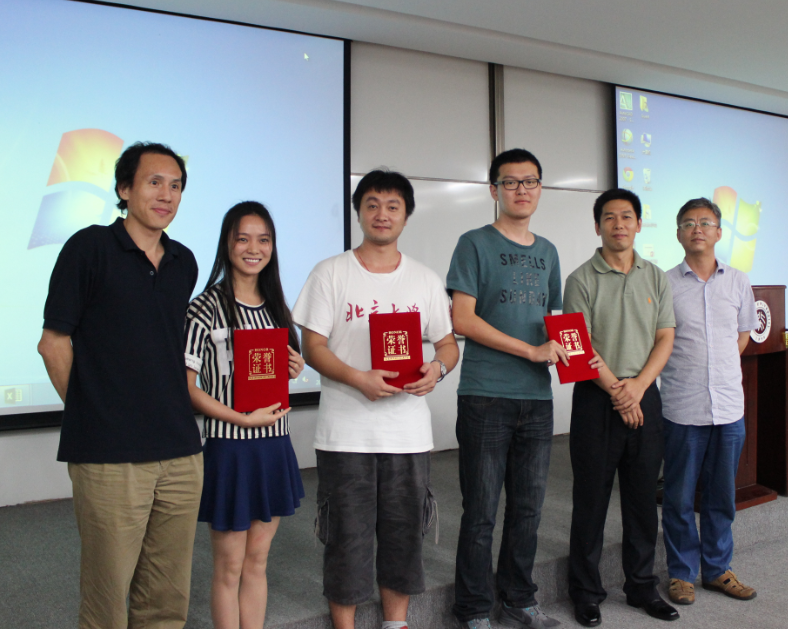 等奖获得者与杨家文老师(左一)、阴劼老师(右一)合影留念