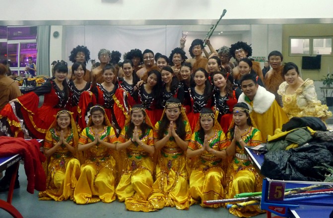 编排初始,舞蹈经验丰富的吴欣玥同学就高效高质的编排出所有的舞蹈动作,这使得排练进展飞速,同学们精心打造的造型使得整个舞蹈充满活力,并将每个场景都表演得精准到位。虽然学业繁忙,但每一次排练一个都不会少。虽然大多数人都是零舞蹈基础,很多看似容易的动作并不能完全表现到位,但没有一个人会马虎应付,而是彼此帮助、互相鼓励,一个手势尝试不同角度看效果,每一步的大小、每一次的站位都认真斟酌,表情、眼神、摆动幅度、跳跃高度,不放过每一个细节,集体动作不整齐的地方就一遍遍放音乐一遍遍排练。没有人抱怨累,也没有嫌重复会枯燥无味,我们自己给自己鼓掌,为自己加油,有舞蹈“总监”欣玥的示范和纠正,也有其他剧目舞者嬉闹“嘲笑”的“指导”,欢声笑语反而让我们觉得每跳完一遍,身上的细胞仿佛都重生了,大家庭的愉快氛围也让我们的心从课业中得到释放。