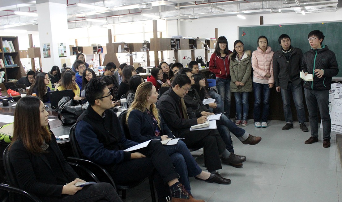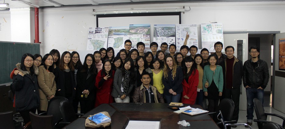 经过长达1个月的研讨与设计,1月3日,2013级景观班全体同学在E栋320进行了最终的成果汇报。汇报邀请了欧博建筑设计事务所共四位嘉宾出席,他们对同学们的设计与表达能力给予了肯定,同时指出了各组方案中的不足,并提出了中肯的指导意见,特别是强调了与现实的对接问题。